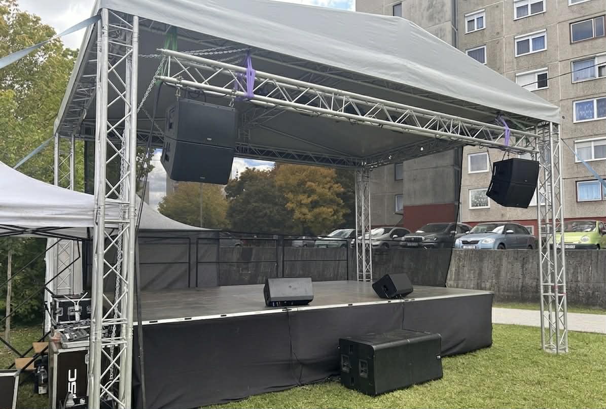Rendezvénye sikerét ne bízza a véletlenre, bízza inkább egy profi csapatra. Minden típusú rendezvényre kínálunk megoldást, kezdve a kis formátumú rendezvényektől a nagy tömegeket vonzó fesztiválokig. Különböző méretű színpaddal (6x4, 8x6, 10x8), valamint színpadfedéssel (6x4, 8x6 és 10x8-as) is rendelkezünk, mellyel teljes biztonságban vannak a színpadon tartózkodók, illetve az ott lévő technikai eszközök is. Több alternatívával is szolgálhatunk a két hangfalas hangosítástól a függesztett line array hangrendszerig, akár egy időben, több helyszínen zajló programok kiszolgálása is lehetséges, illetve a világítástechnikával kapcsolatban is több a lehetőség, a lámpapark főleg mozgófejes lámpákból áll (30 db wash, 20 db beam, stroboszkópok, blinderek, füstgépek). Esetleges további vizuáltechnikai eszközökkel is szolgálhatunk, melyek emelik a rendezvénye színvonalát.